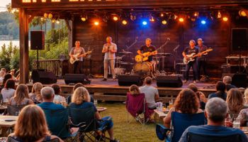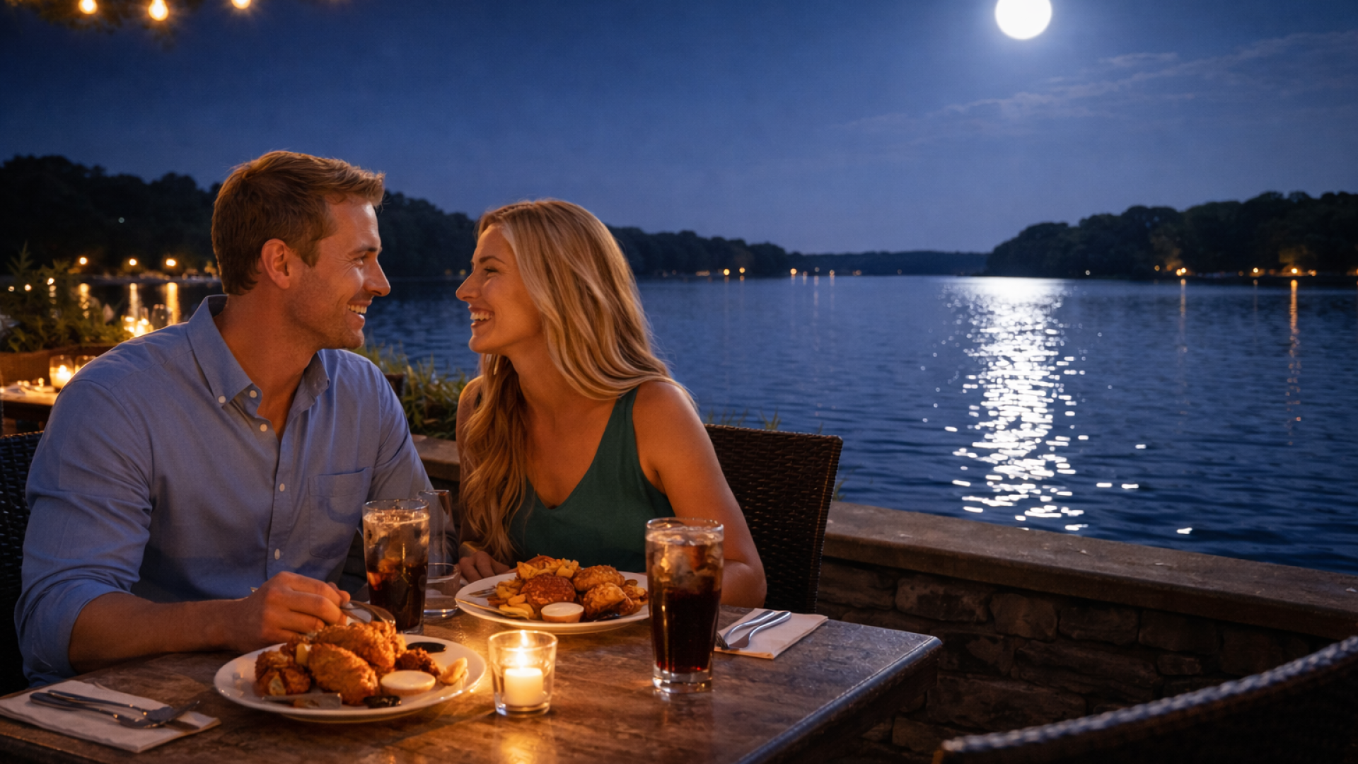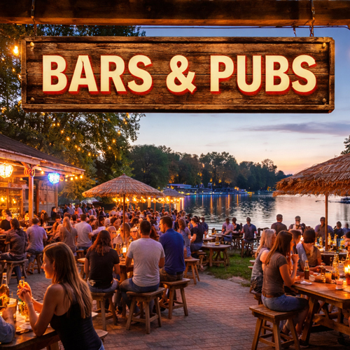 The chain doesn’t hibernate. Ice fishing derbies draw hundreds of anglers to the frozen lakes each winter, while nearby restaurants and bars keep the community warm year-round. From ice shanties to snowmobile trails — winter on the Fox Chain has its own magic.
