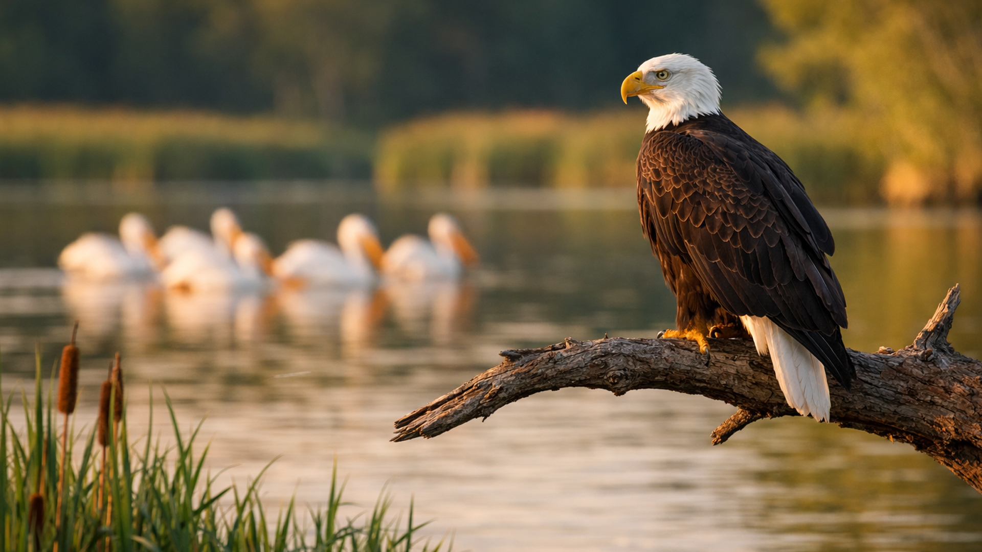 The eagle’s recovery from near-extinction in Illinois (the state once had just three active nests) is directly tied to the banning of DDT, the Clean Water Act’s impact on river and lake quality, and the bird’s adaptation to include carrion in its diet alongside fish.